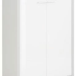 Platingraues Sideboard SET+ mit 2 Türen mit Weißglasbesatz und 2 höhenverstellbaren Einlegeböden. Der Korpus ist mit Melaminharz beschichtet und die Kanten mit ABS ausgestattet, so ist dieses Schränkchen kratz- und stoßunempfindlich.