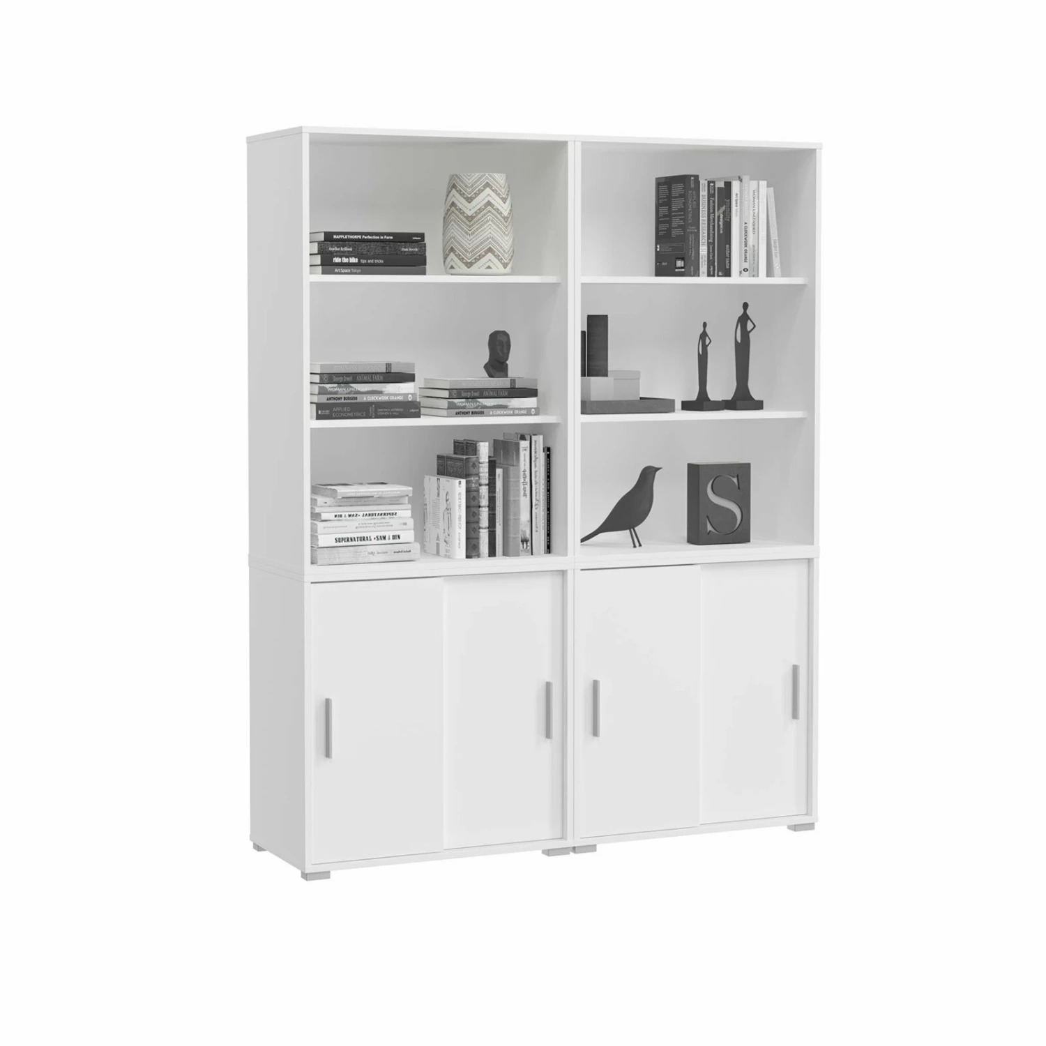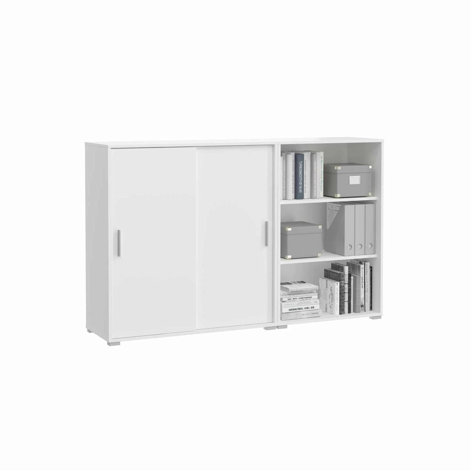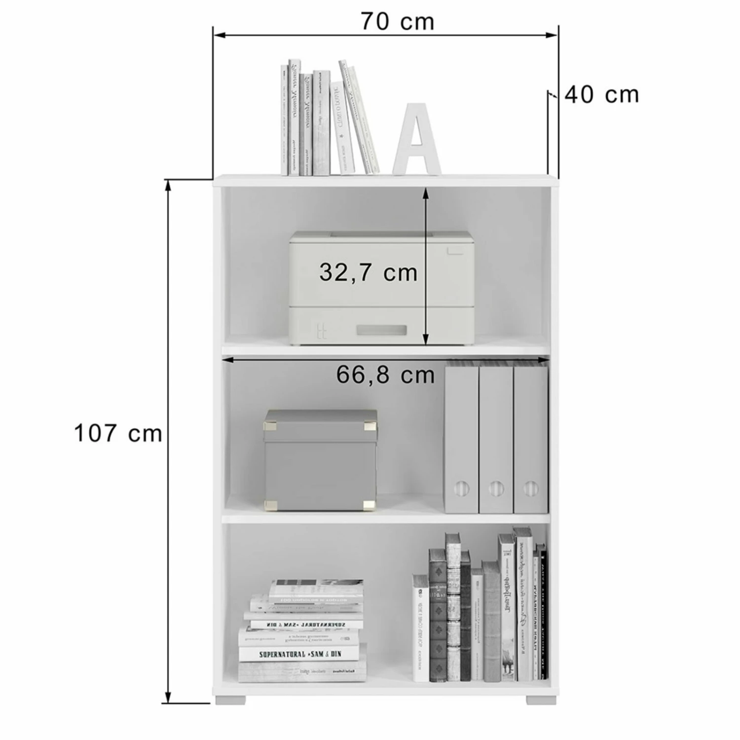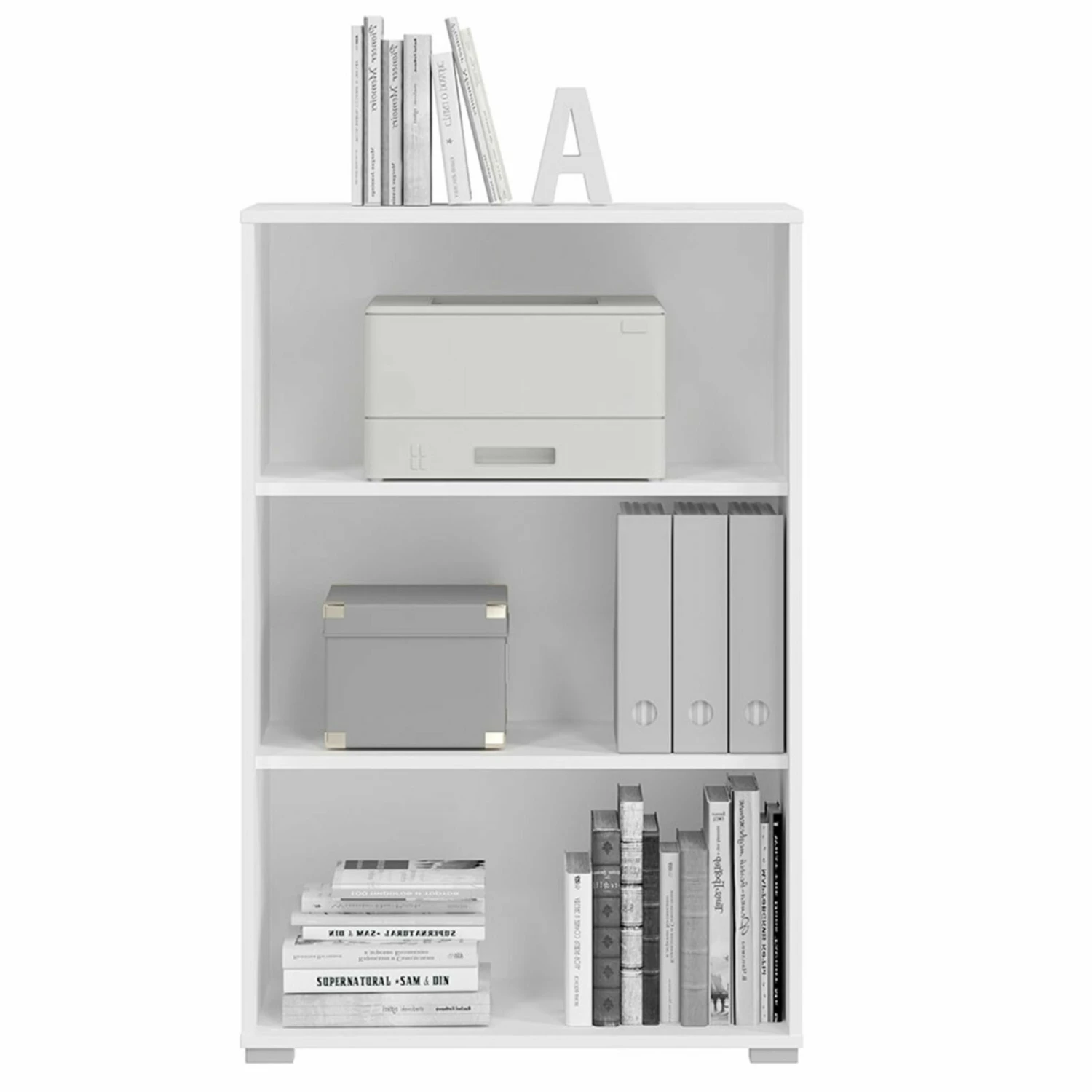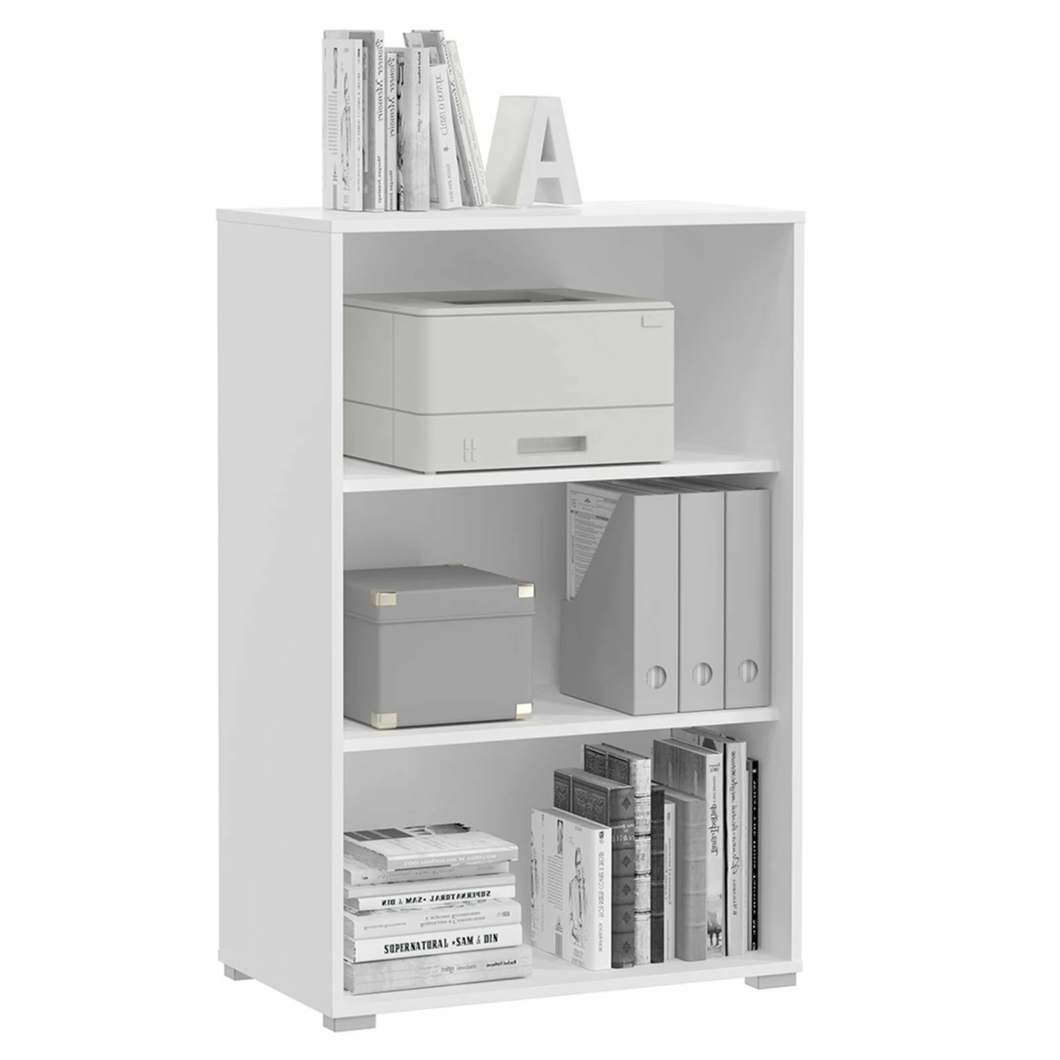 Mit diesem Regal erweitern Sie Ihre Stauraummöglichkeiten in Ihrem Wohn- oder Essbereich. Drei offene Fächer bieten Platz für Dekorationen und anderen Gegenständen. Die Griffe und Füße aus Kunststoff in Aluoptik runden das moderne Design ab.