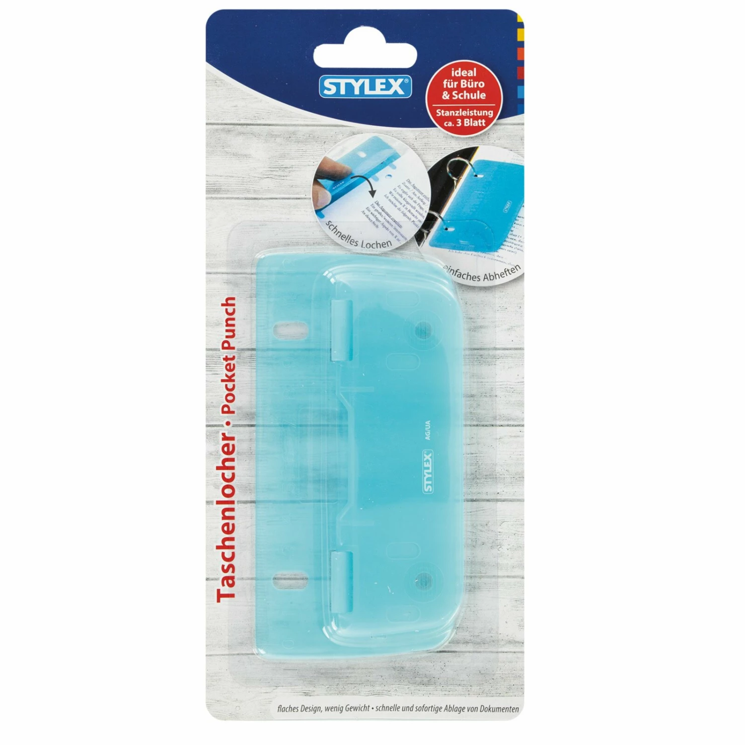 Praktischer Taschenlocher für Arbeit, Zuhause und Schule! Mit diesem Locher sind Dokumente schnell und einfach gelocht und abgelegt. Aufgrund des flachen Designs passt es in jeden Ordner oder Tasche. Mit einem 12 cm integriertem Lineal, ist der Locher in 4 Farben erhältlich.