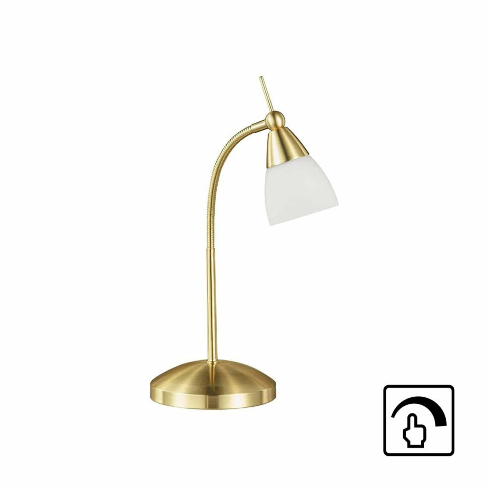 Die klassische Tischlampe mit einem matten Glasschirm ist ideal für Ihren Tisch, aber kann auch problemlos als Nachttischlampe aufgrund des schlichten Designs verwendet werden. Mit dem Flexarm können Sie je nach Belieben die Ausrichtung des Lichts verändern und die Leuchte so bis zu etwa 40 Zentimeter in der Höhe strecken. Mithilfe des Touch-Dimmers können Sie die Stärke des Lichts mit einem Tippen verstellen.