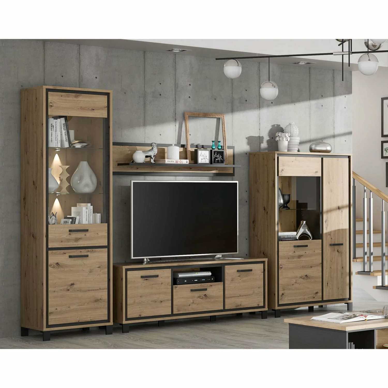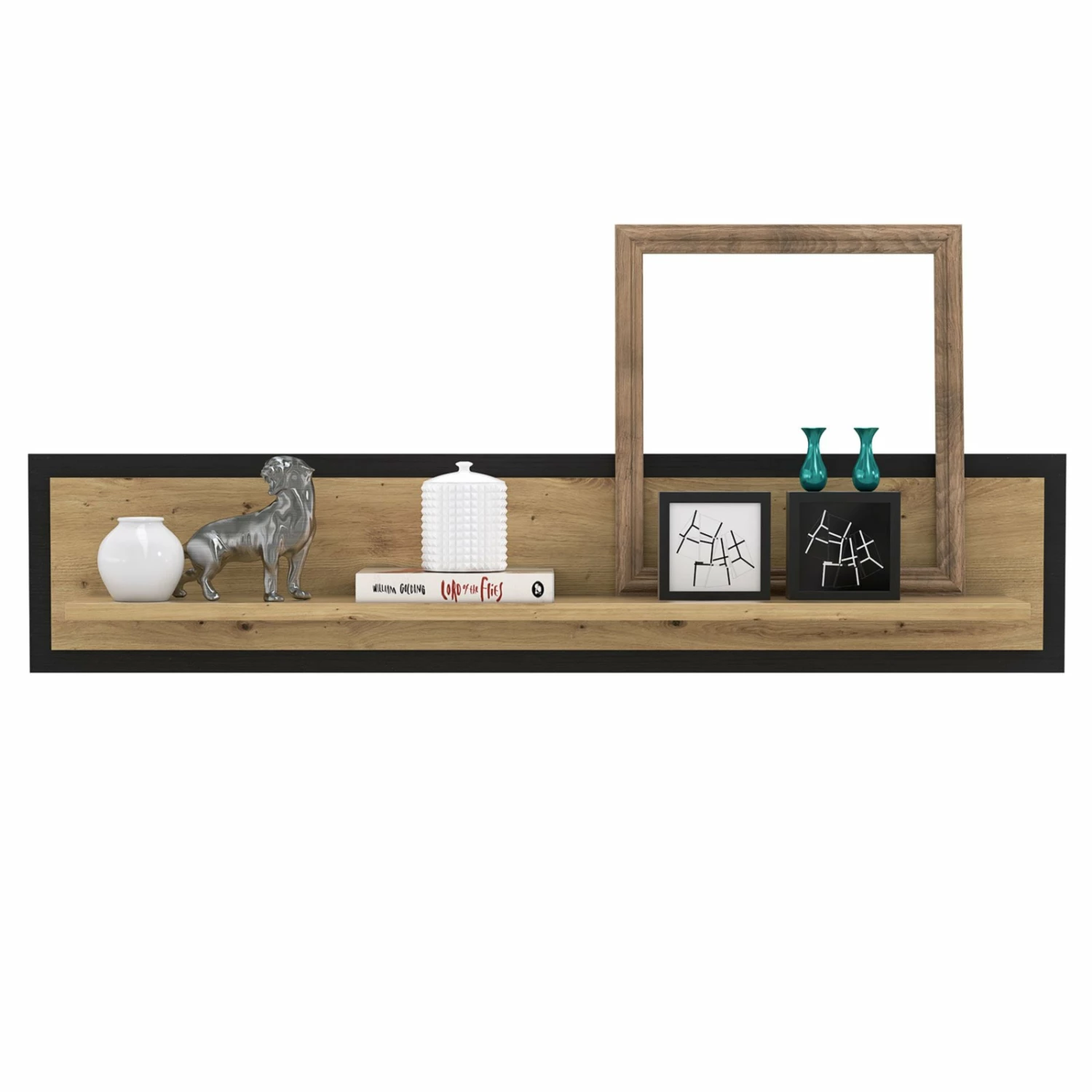 Das etwa 140 Zentimeter breite Wandboard in Artisan Eiche und Schwarzeiche Nachbildung ist der ideale Platz, um Ihre Dekroationen oder Bücher in Szene zu setzen. Die große Ablage kann für die verschiedensten Utensilien genutzt werden.