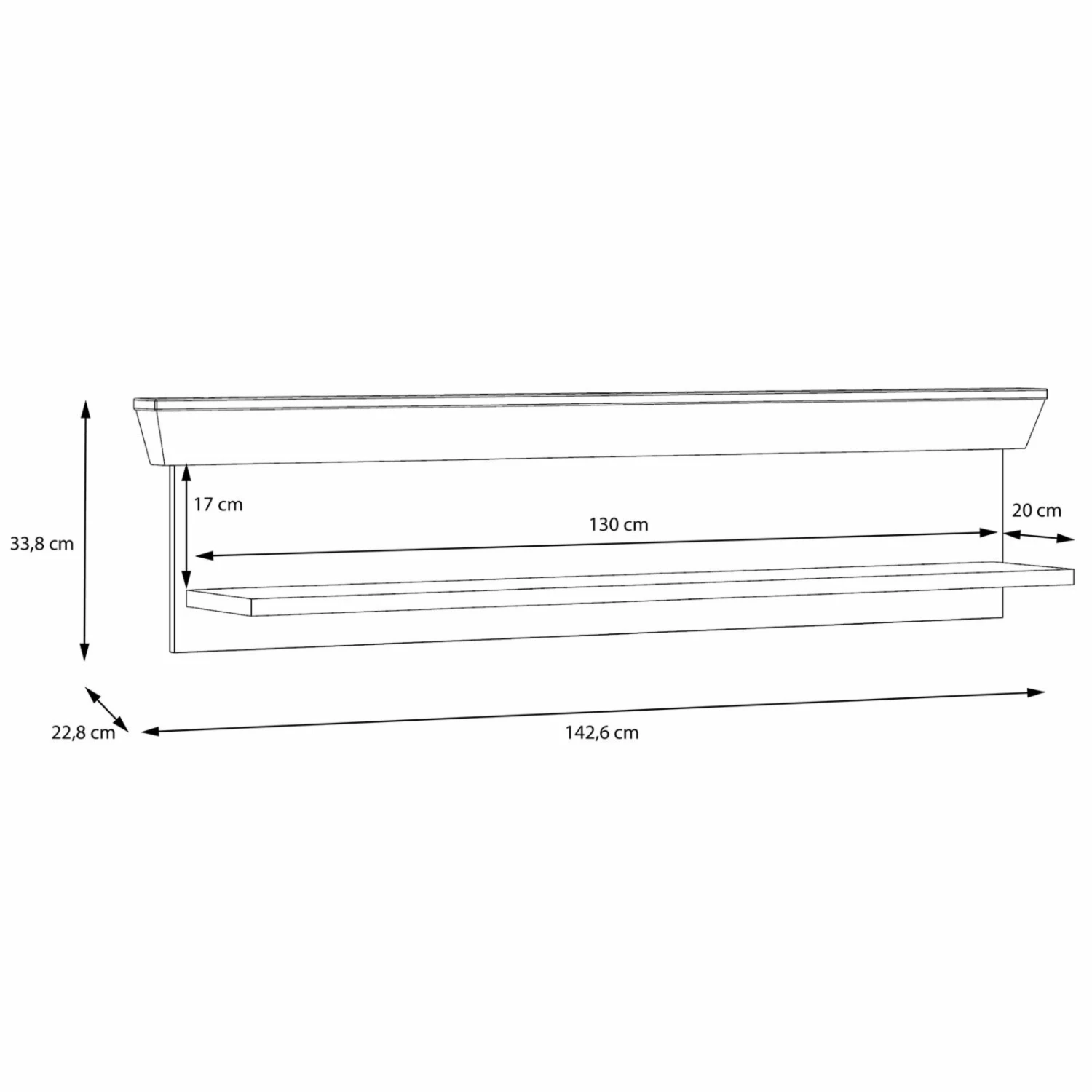 Das etwa 143 Zentimeter breite Wandboard eignet sich hervorragend, um Ihre Bilder, Vasen oder sonstige Dekorationen in Szene zu setzen und an Ihrer Wand zu präsentieren.