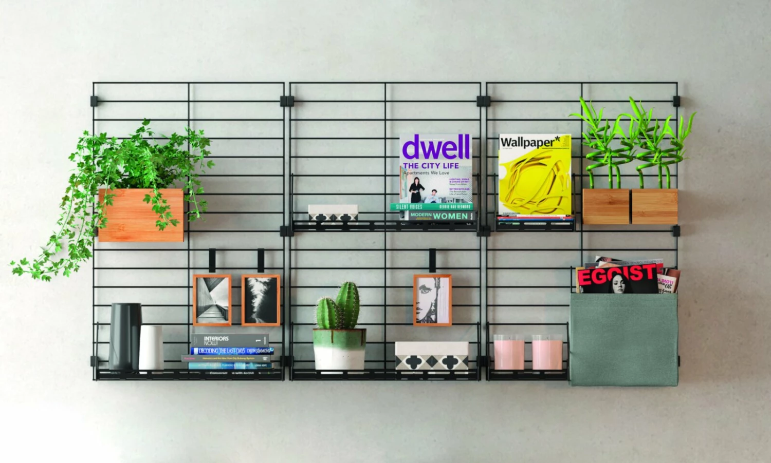 Das Mural Line Wandgittersystem-Set versorgt Sie mit den nötigen Modulen für ein einzigartiges Wandbild. Das Wandgitter wird über sechs Befestigungen durch Schrauben und Dübel in der Wand befestigt. Das Montagematerial ist im Lieferumfang enthalten. Bei Bedarf kann das Wandgitter mit weiteren Gittern erweitert werden. Die Textil-Tasche kann für Bücher oder Zeitschriften verwendet werden. Auf der Ablage können beispielsweise Ihre Lieblingsbücher Platz finden. Doch die Anwendungsbereiche sind groß und Sie können Ihre Fantasie spielen lassen. Die drei mitgelieferten Haken ermöglichen weitere Aufhängungen wie Kalender oder Badutensilien.