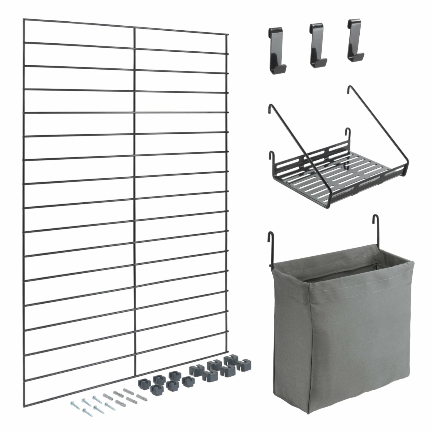 Wandgittersystem-Set – schwarz – 43×68 cm