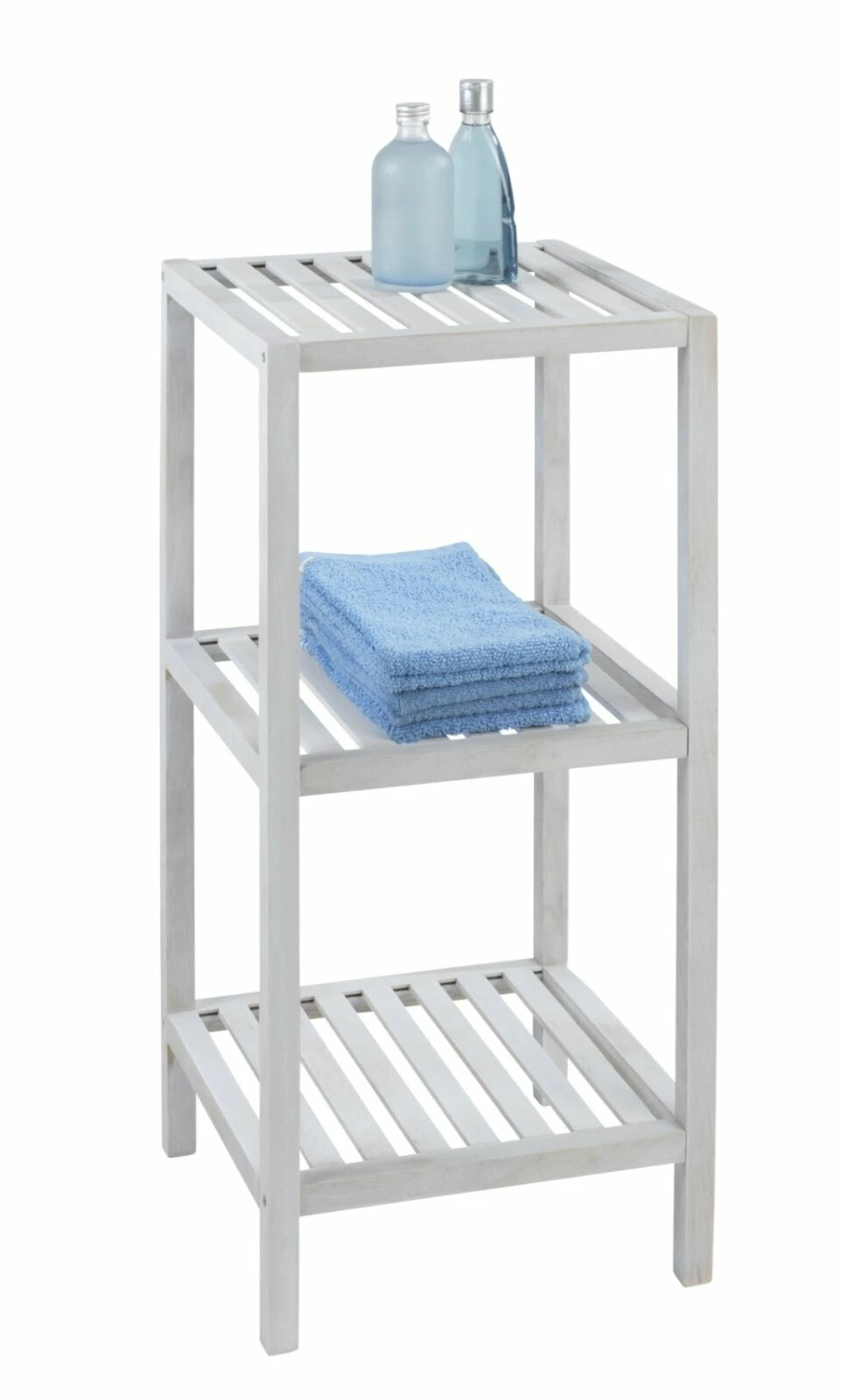 WENKO Badregal NORWAY – weiß – Walnuss massiv – 3 Böden