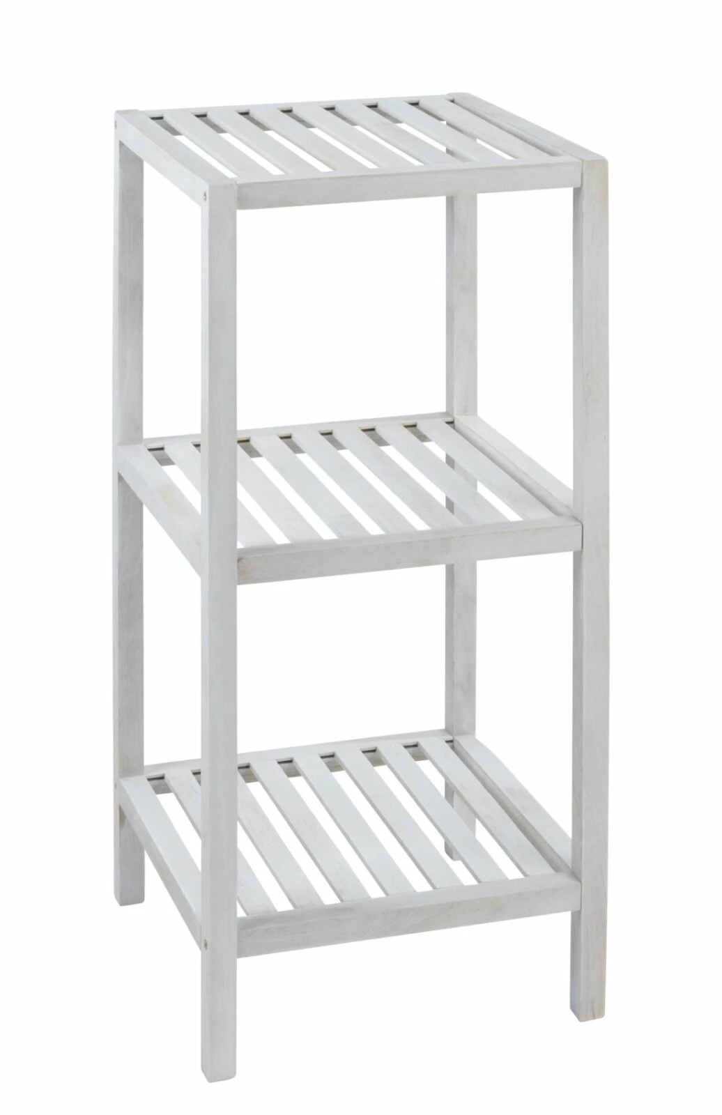 Sorgen Sie in Ihrem Badezimmer für mehr Ablageflächen, mit Hilfe von diesem WENKO Badregal NORWAY. Es wurde aus massivem Walnussholz gefertigt und in einem zeitlosen Weiß gekälkt. Dadurch bekommt das Regal seinen charmanten Look. Die drei Ablageböden bietet reichlich Stauraum für Ihre Badutensilien oder Dekorationen.