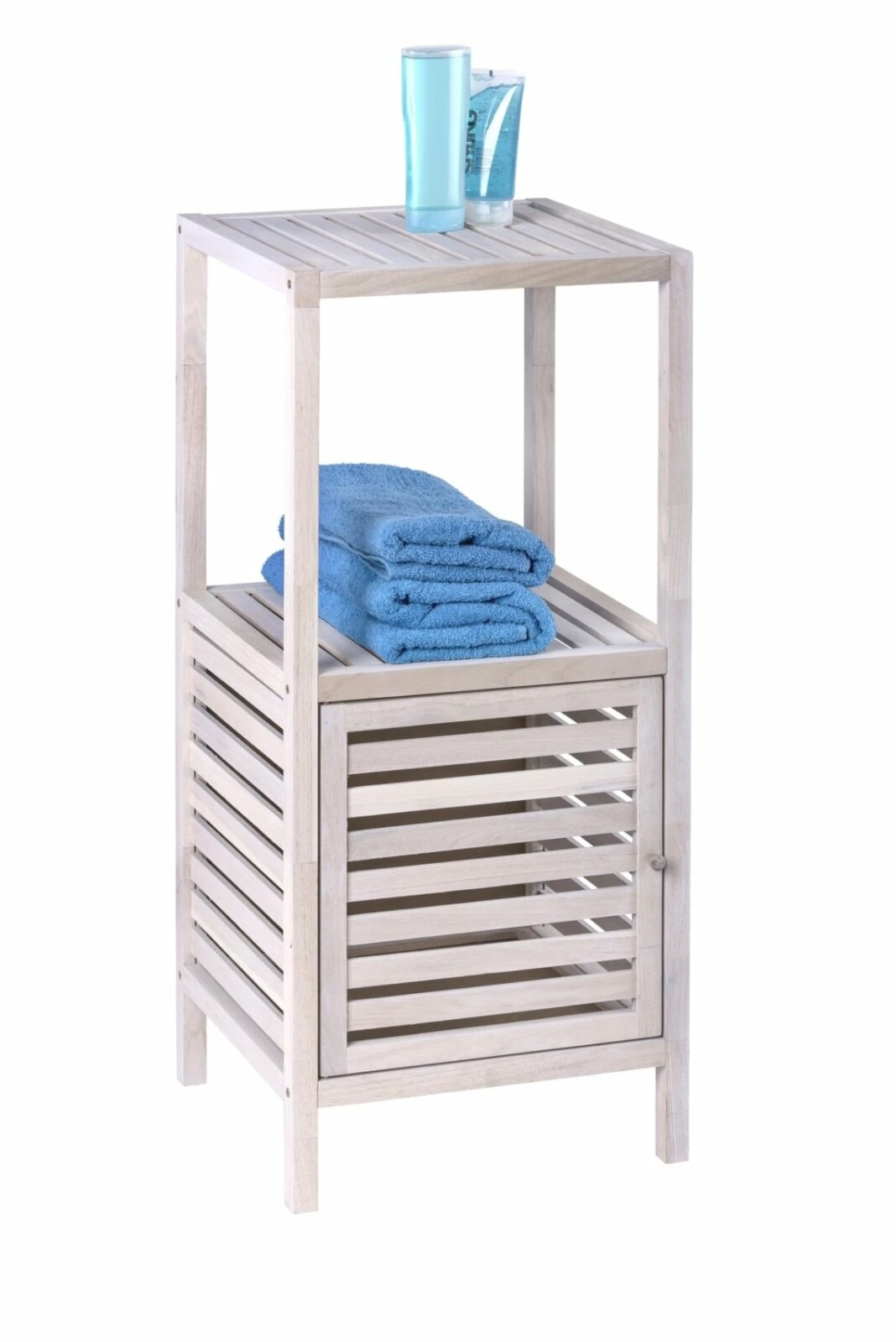 Das aus massivem Walnussholz gefertigte WENKO Badregal NORWAY wird in Ihren Badezimmer für reichlich Stauraummöglichkeiten sorgen. Diese finden Sie hinter der Tür und auf zwei Ablageflächen, die Platz für Badutensilien und Dekoration bieten. Das in Weiß gekälkte Massivholz wird ein modernes Ambiente in Ihrem Raum versprühen.