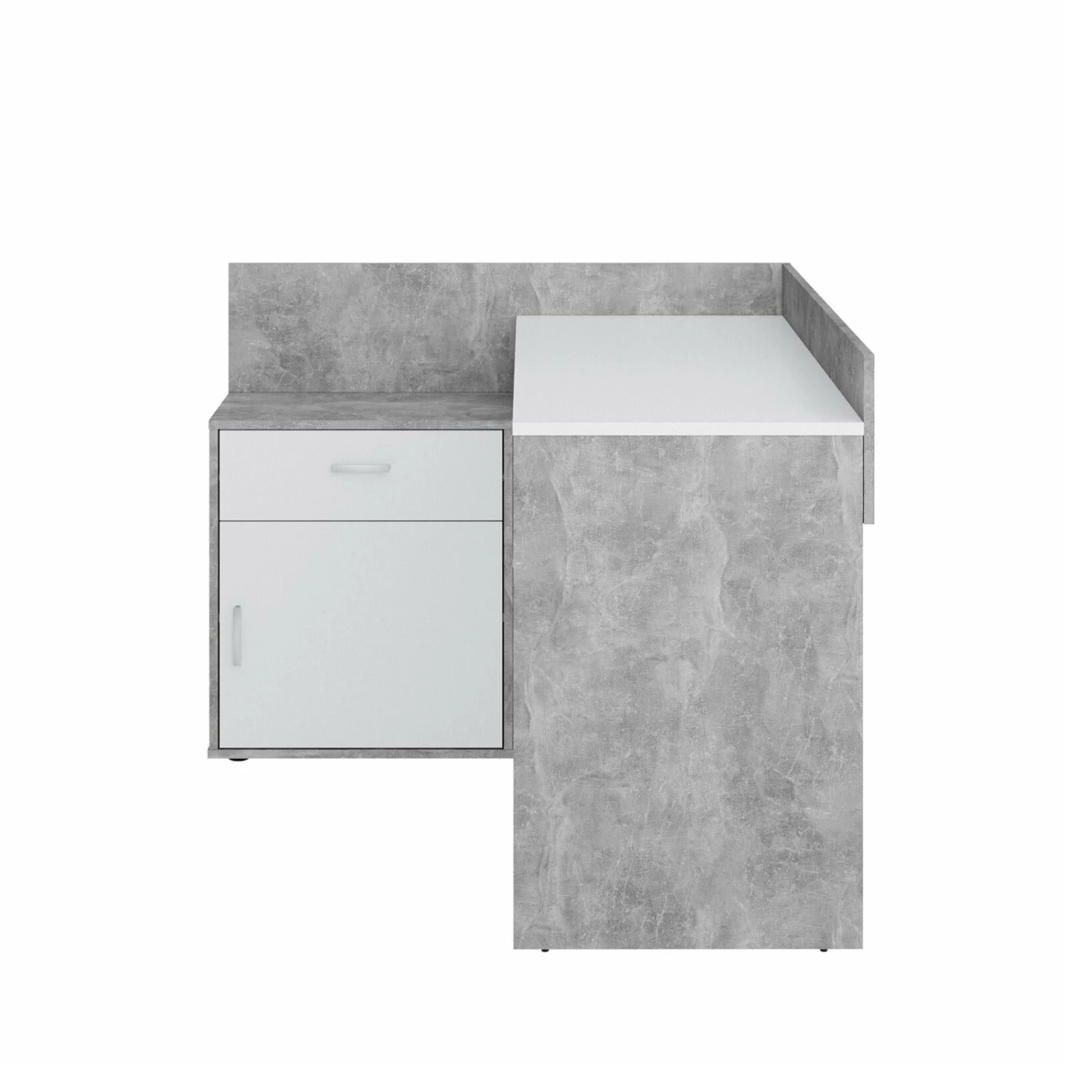 Winkelschreibtisch – Beton Optik – weiß – 129 cm breit