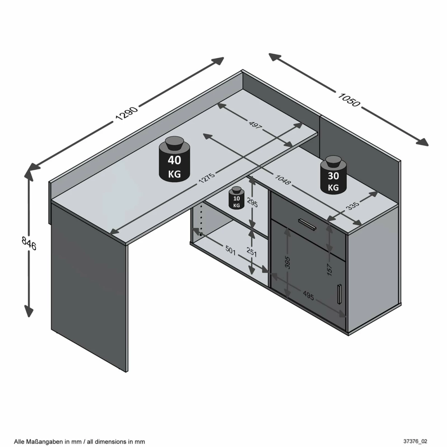 - Maße: BxHxT ca. 129 x 85 x 105 cm