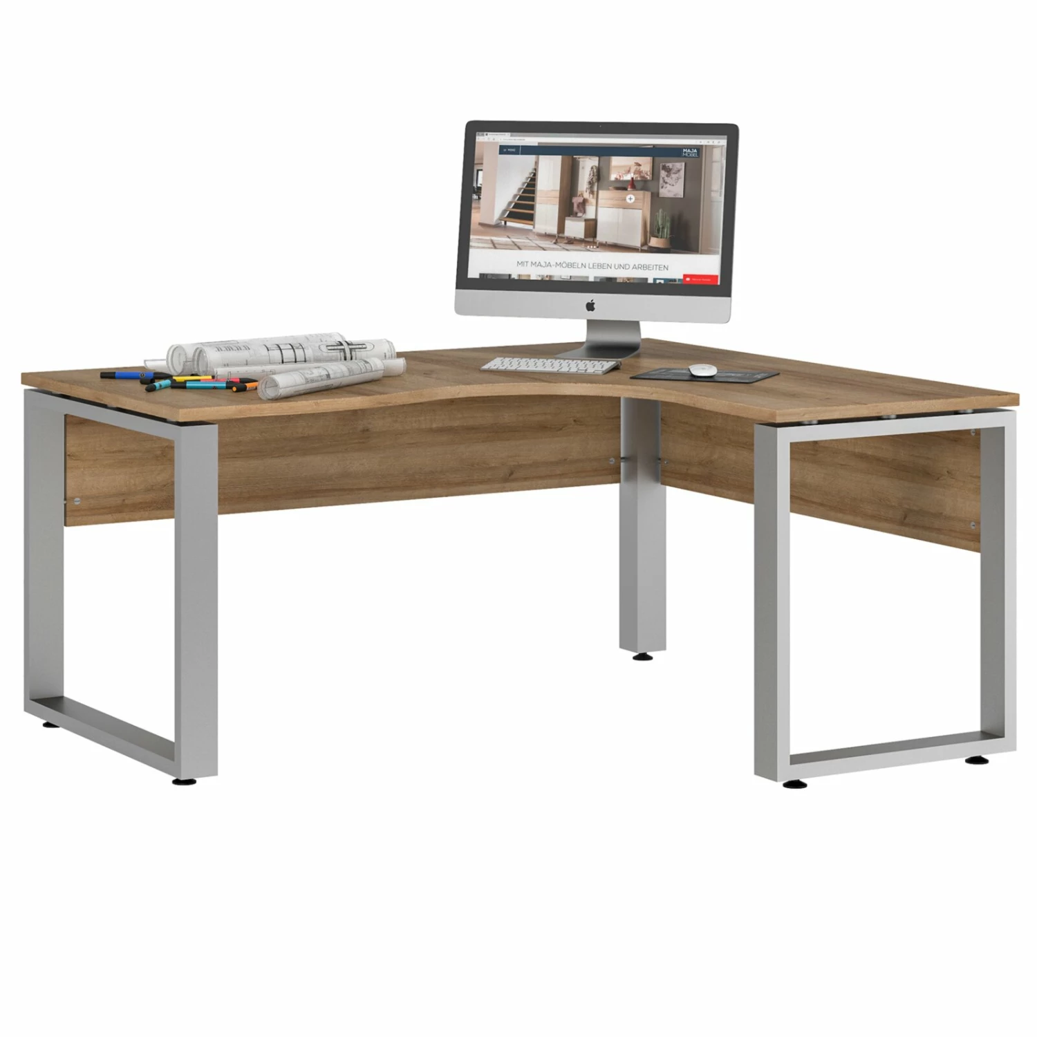 Winkelschreibtisch – Riviera Eiche – Alu-Optik – 160 cm
