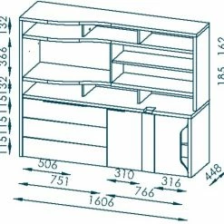 Minioffice EDJUST – Riviera Eiche-weiß Hochglanz – 3 Schubkästen links