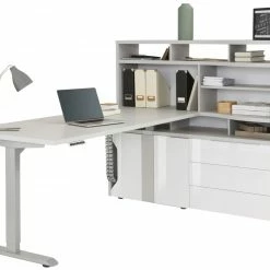 Minioffice EDJUST – platingrau-weiß Hochglanz – 3 Schubkästen links